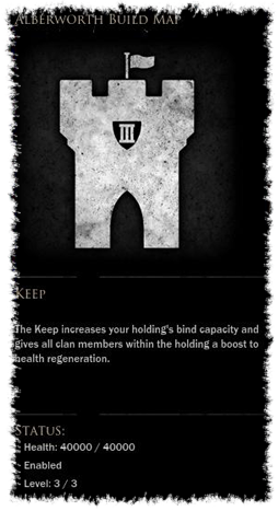 Once your clan captures a holding, you will need to erect various buildings to improve defences, provide crafting stations and NPC’s for your clan members as well as enable perks that benefit your clan.