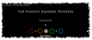 The standing between two clans will be displayed in the GUI as an appropriate text color of the clan’s name and in game as the color of the targeted player’s name.