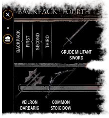 At the top right of the backpack window you can also see it’s weight capacity as well as the gold you are carrying.