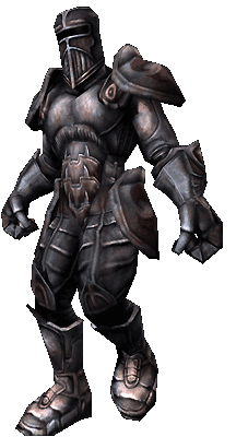 Black Knights wear suits of armour that are decorated with etched depictions of Malaut?s symbol, the red crown. They stand three meters tall, and wield black swords that are too heavy for any mortal. Thin wisps of smoke issue slowly from their visors. Black Knights are the elite soldiers in the armies of Malaut. They stand guard over his temples, serve as bodyguards to the Below, and champion the faith against its enemies. They follow the orders of Below to the letter, and they never retreat or surrender.